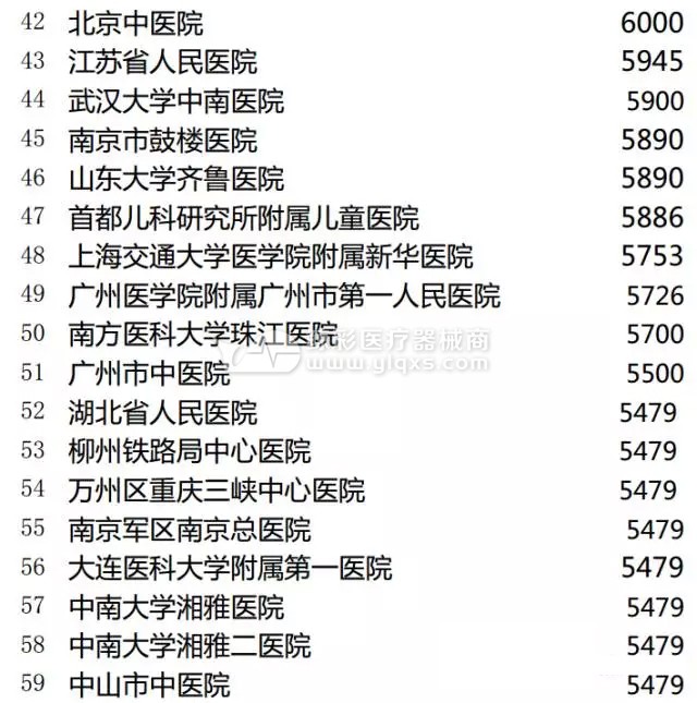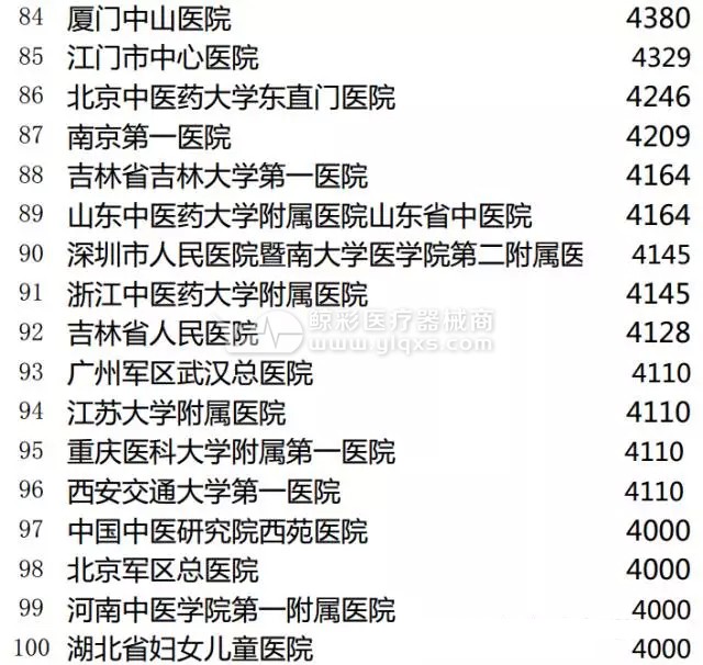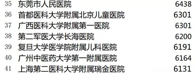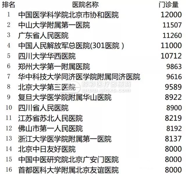 三甲医院门诊量TOP100