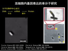 由于一个基因在单个活细胞里只有1到2个拷贝,基因表达过程就跟单个酶分子反应一样,也是随机发生的,所以单分子生物学与单细胞生物学是密切相关的。我们对单个活细胞的基因表达进行了非常详细的研究,从而使得分子生物学的中心法则得到了定量的描述。