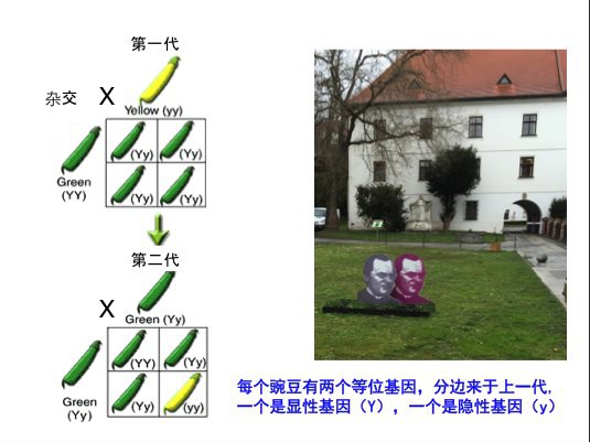 (右图是孟德尔种植豌豆的田地,其上是他的雕像)