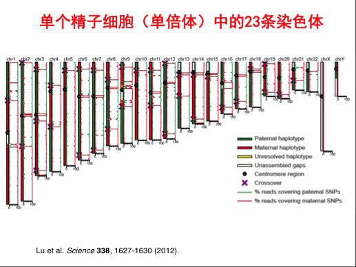 我们当时做的第一个实验就是测单个精子的序列。精子作为生殖细胞,是单倍体,有23条染色体,其中一半基因来自父亲,一半基因来自母亲。