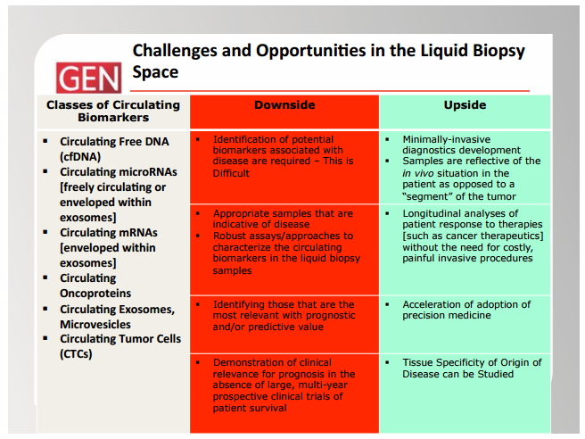 比较不同种类的循环生物标志物在液体活检发展中的实用性
