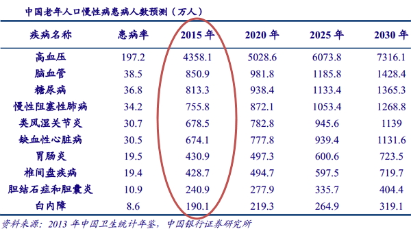 4、疾病预防和个性化治疗需求远未满足 现代科学证实,大部分疾病是基因与外部环境共同作用的结果,几乎所有疾病(除外伤)的发生均与基因有关。 人类基因组研究成果表明绝大部分人群携带有某些类疾病的易感基因,当人群接触某些不良因子和环境时,其发病几率远高于非携带易感基因人群。因此,人们逐渐意识到只有真正了解自身的基因情况,才能通过改善客观环境、定期体检等方式尽可能地延缓或阻止疾病的发生。 我国慢性病患者人数快速增长,对精准医疗有着迫切需求。推动精准医疗需求。目前我国每年 310 万癌症新增案例,高血压患者达 2.6 亿,糖尿病患者超过 1 亿人,糖尿病潜在人群1.5 亿;每年 220 万癌症死亡案例和 300 万心血管疾病死亡案例。上述疾病通过传统方法难以根治或治愈,对精准医疗有着迫切需求。