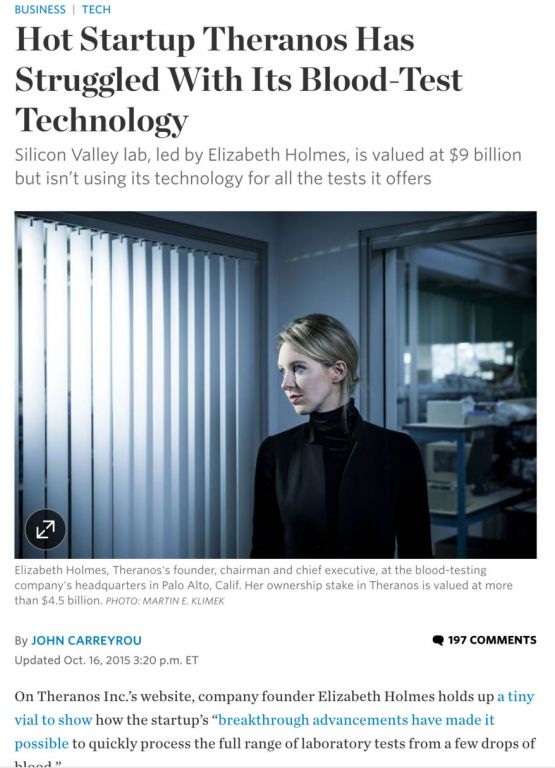 这几天,在华尔街报带领下,各大媒体一窝蜂地爆料Theranos公司负面新闻,简单Google一下就可以看到: 故事的主线是:平时爱穿黑色套头羊毛衫的美女CEO,十九岁从斯坦福退学成了Theranos公司,因为从小就怕针,发誓开发出一个仪器,只用一滴指尖血就能血诊断成百上千个指标,给医疗行业带来革命性的革新,改变世界,造福人类。 结果华尔街报的记者侦探发现该公司的诊断数据非常不准,而且绝大多数试验都不是用该公司自己研发的,代号“爱迪生”的仪器做的,而是用一般常用仪器完成的。十月份的这篇文章是导火索: 有人说,引起媒体注意是因为这个公司是圈钱的高手:已经集资7.5亿美金,估值高达90亿美金: 能够圈到这么多钱,很大程度上是因为有一个高大上的董事会。董事会中有两个前任国务卿(基辛格,索尔兹),一个国防部长,两个国会议员,两个退役将军,一个疾控中心主任等等。这些人完全有能力管理一个国家,不要说一个小小的诊断公司了。 一个很多人不知道的秘密就是那7.5亿美金的投资是哪家风投机构出的大头钱。因为一般风投押宝后都会在该公司网站上炫耀投过的公司,可是没有哪家硅谷的著名风投承认是出资方。我觉得,能有这么多钱,不懂技术,冲着国宝级董事会就投钱的除了中东的大财主,就是中国的土豪。 华尔街报的系列报道出来以后,负面报道满天飞,美女CEO和公司都被说得一无是处。 连我的投资人都写email问我,似乎担心我们的诊断公司也有类似的问题。我跟投资人半开玩笑地解释说:“首先,我不是美女。我没有黑色套头羊毛衫。 其次,我没有退学,而是呆呆地把医学院,博士读完了。还有,我们的产品在三家美国医院做了临床验证,和金标准直接比较,结果发表在Peer review的杂志上了。还有,我们的产品正在申报FDA报批;我们的技术也没有任何密不可宣的地方,关键技术都有专利保护;而且,公司的估值也不过是人家的一个零头。所以,你没有必要担心。” 认真地讲,Theranos的故事还是有很多值得我们研读的。 (1)从技术角度讲,“爱迪生”并没有太多的创新。它的理念就是把微液体技术应用到传统的生化免疫实验中,使标本需求量降低,速度增快,价格降低。从技术上讲,这不是一个高不可攀的目标。不过,伊丽莎白女神一定不知道一个检验届的“常识”:速度、精准度和价格,是诊断的三要素,不过你不能全得,只能三选二。 客观地讲,用一个技术平台和另一个技术平台比,本来就会有很大的偏差,很难说那个对,那个错。同一个标本,同时测两次,定量指标的误差可以在5%左右;同一个人在两个不同时间取样的两个标本,差别可以在10%左右;如果用不同的技术平台,同一个标本得到的误差可以在20%左右甚至更多。如果是免疫学实验(抗原抗体检测),因为不同厂家生产的抗体效价不同(针对不同的抗原决定族等原因),技术路线不同,反应体系不同,都会导至误差。如果是分子诊断(PCR),因为引物设计不同,反应条件不同,试剂体系不同,也会有很大的误差。所以,不能武断地说Theranos的技术平台一无是处。 (2)从科学的角度看,“爱迪生”也没有太大创新。它给医生和病人提供的不是新的,革命性的信息,而是从新包装过的,已经使用多年的信息。这个可以在该公司的网站上看到。 Theranos的一个卖点就是“一滴血”。可是“一滴血”是一个好听的卖点而已,没有太大的价值。首先,指尖取血不一定就比手臂取血少痛到哪里去。指尖上的神经分布更密集,是最敏感的地方。其次,一滴血有很大的取样误差。血液不是想象的那么均匀,每滴血都含有均匀分布的待测物。所以,实验重复性不好的一个原因之一就是取样(太少)产生的误差。还有,使用一滴血检查那么多指标,相互干扰背景高,也很难找到一个最优的反应条件,让所有生化反应都能高效完成。 (3)从商业模式上讲,Theranos是有很大的创新性的。他们要摆脱“医生开单,第三方实验室检测,保险公司付钱”的传统模式,把各项检验明码标价(传统检验的价格是个暗箱),直接提供给用户(可以是病人,也可以是医院)。他们试图通过量产提高效率(一滴血不是关键),拿到定价权,从而除掉中间商(三方诊断实验室)。这实际上是很典型的“互联网+” 的商业模式(我前段时间写过一篇博文讨论这个题目)。 我认为,Theranos公司在技术上有难度,但是是可行的;在科学上有难关,也是可以攻克的;在商业模式上有新意,但是不能用互联网的估价公式来衡量生物技术公司,毕竟是人命关天,需要更多时间。不过,如果有足够多的钱烧,最后也可能闯出一条路来。 |