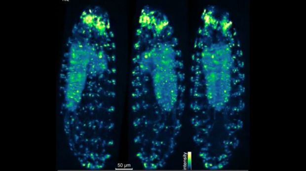 在过去的十年里,一种称作为体内振动光谱成像(vibrational spectroscopicimaging)的技术一直被用来捕捉一些活体组织中蛋白质、脂类、核酸和其他分子的活动。尽管这一技术可在无需荧光标记的条件下显影组织,但它仍然太慢而无法适用于大多数的研究和临床应用。 10月30日,Purdue大学的科学家们报告称,他们利用体内振动光谱成像技术大大提高了收集图片的速度(从分到秒)。新技术最关键的改进是不再需要收集分子振动信号的光谱仪。取而代之的是,这一改进的技术在光子进入组织前会对其进行颜色编码。 该研究的通讯作者 Ji-Xin Cheng 说:“我们的想法是在将光子发送到组织前,用不同的兆赫频率进行颜色编码。通过这样的方式,我们能够在几十微妙内收集漫射光子,并通过编码频率和光颜色之间的一一对应检索光谱。” Whole-animal functional and developmental imaging with isotropic spatial resolution. Nature Methods. [文献]