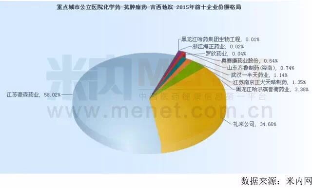 盖诺(酒石酸长春瑞滨注射液) 长春瑞滨最先由法国PierreFabre公司研制开发,注射剂于1989年在法国首次上市,用于治疗晚期乳腺癌和非小细胞肺癌。国产长春瑞滨注射剂由豪森医药于1999年在国内上市。2012年9月,豪森生产的抗肿瘤药品“盖诺”(酒石酸长春瑞滨注射液)通过美国FDA认证。 据米内网样本医院数据,盖诺占据了长春瑞滨市场份额的50%以上,超过了原研药生产企业。