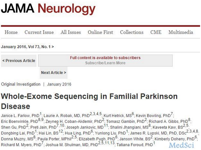 贝勒医学院分子和人类遗传学儿科学系、人类基因组测序中心和德克萨斯大学健康科学中心的研究人员最新一项报道称,在家族性帕金森病患者发现几个关键的突变基因,包括TNK2和TNR有稀有突变。在12个家系中,这两个基因有9个突变位点。这项研究为深入研究帕金森病的致病基因提供依据。 实际上,贝勒医学院分子和人类遗传学、儿科学教授James R. Lupski博士对大量疾病都进行了相关研究,包括心脏性猝死,Contiguous Gene Duplication Syndrome,Meier-Gorlin Syndrome等。甚至他认为临床外显子组测序可诊断25%的疾病。 临床外显子组测序可诊断25%的疾病 几年前,James R. Lupski博士在3386名接受全外显子组检测的患者当中,有大约25%的患者被诊断为一种已知的遗传疾病(一种基因突变或疾病相关变异),更加验证了他们一年前在《新英格兰医学杂志》(New England Journal of Medicine)发表的250例初步报告的诊断率。 Christine Eng也将把目前的结果提交到2014年10月21日圣地亚哥举行的美国人类遗传学协会年会。 本文贝勒医学院分子和人类遗传学、儿科学教授James R. Lupski博士指出:“这份报告的结果,总体上将永远改变未来的儿科学和医学实践。将基因组学提升到医生要做的事情名单中之前,只是一个时间问题。这将是新的‘家族史’,让你获得从自每名患者继承的重要变异和引起疾病易感性的新突变。” 事实上,大部分的诊断是在继承一个新突变(卵子或精子中)的患者当中得到的,这个新突变以前没有在其父母中见过。 利用新的测序技术(被称为新一代测序)测定患者的DNA,并将其结果与正常参考进行对比。然后,任何的疾病相关突变也与患者的DNA进行比较,以确定是否患儿从父母遗传了该突变,以更好地了解疾病的原因。在这项研究中,全外显子组测序也确定了医生可以临床干预以缓解或消除负面症状的方法,使家庭获得关于可能病程的更多信息。 除了在更大患者组中证明了25%的诊断率之外,这项最新研究还表明,罕见遗传事件可大规模地引发疾病易感性。 疾病的主要原因包括,患者中的新生事件——指首先发生在基因当中的一个单一变化(称为孟德尔突变)、单亲二体(患者继承了来自同一亲本的一个突变的两个拷贝)、嵌合体和拷贝数。 德克萨斯儿童医院临床儿科遗传学家Lupski指出:“临床外显子组测序可以协助诊断各种难以诊断的疾病。”本研究中的许多患者来自于德克萨斯儿童医院获美国的其他医疗中心。 Lupski说:“罕见变异和孟德尔疾病是疾病人群的重要因素。这与群体遗传学家的思维形成了鲜明的对比,他们通过全基因组关联研究,调查常见突变事如何引发疾病易感性的。我们发现,‘罕见变异’聚集实际上可大规模地引发疾病易感性。个体疾病可能是罕见的,但是有成千上万这样的疾病,更多的是通过基因组确定。” 贝勒医学院儿科学和分子人类遗传学教授、贝勒医学院癌症遗传学诊所主任、德克萨斯儿童医院癌症中心成员Sharon Plon博士指出:“我预计,在未来几年内,我们将了解全外显子组测序在成人医学和儿科领域以外的重要性。目前正在执行一项NIH支持的临床试验,在儿童癌症患者中进行全外显子组测序,以了解全外显子组测序对这些患者的潜在有效性。” 在对2000名患者的详细研究中,有504名患者接受了分子诊断,其中280名患者具有致病的单个基因突变(常染色体显性),181名患者是常染色隐性(两个突变基因),65名患者是伴X染色体(X染色体突变),另外1名患者被假定是线粒体遗传。在5份病例中,患者从其同一亲本遗传了突变基因的两个拷贝(单亲二体)。在显性突变中,有208个是新生突变,不是遗传自父母,有32个是遗传性的,还有40个是不确定的,因为其父母样本不能用于实验室分析。 在新生突变当中,有5个已证明的嵌合体,表明突变发生在受精后。嵌合体意指,患者有一个小的细胞群,具有与身体大多数细胞不同的遗传模式。 研究人员在504份病例中发现了708个假定的致病变异等位基因,大多数变异是新的且以前没有报道的。值得注意的是,近30%的诊断发生在研究人员过去3年中确定的疾病基因当中。在65份病例中,除了外显子组测序以外,没有可用的基因检测来发现当时的突变基因。 Eng称:“医生通常试图找到一种诊断,来解释一名患者可能会有的所有问题。我们发现,在某些情况下,患者可能会有两种不同疾病的一个混合表型。这种患者可能有两种不同的罕见遗传性疾病,来解释他们的疾病是在使用全外显子组测序之前的一个意外发现。” |