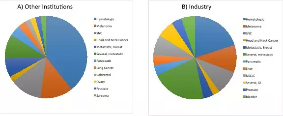 不同癌症第一阶段的开放临床试验数量 自从美国外科医生和癌症研究员William Colley发表第一个肿瘤免疫学领域观察评论以来,相关的各类研究与商业并购接踵而至。1890年代以及整个20世纪,我们在肿瘤免疫学领域的收获颇丰,人类认知的边疆逐步涵盖了癌症免疫应答及其遗传机制的分子基础。不断更新的实验试剂与设备促使着这一伟大行动的持续发展,使得先进的临床科研成果促成了现今前所未有的肿瘤免疫学商业化浪潮。