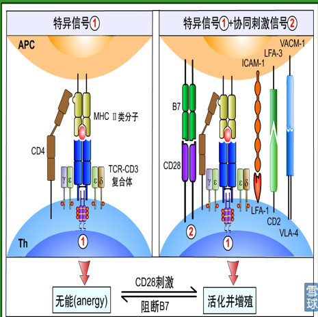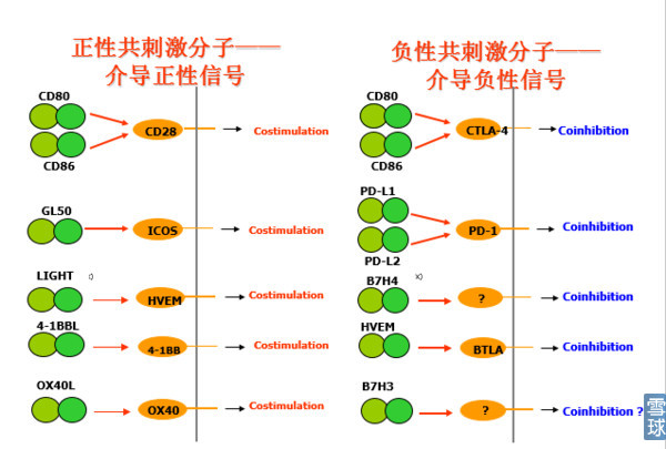 共刺激(正性共刺激)分子/协同刺激分子 → 增强TCR信号介导的免疫应答 共抑制(负性共刺激)分子/协同抑制分子 → 抑制TCR信号介导的免疫应答