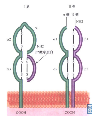 MHC,说MHC可能很多人不知道,但HLA很多人都知道,比如去医院体检发现HLA-B27阳性,医生就会提示可能得了强直性脊柱炎,HLA就是受控于称作人类主要组织相容性复合体(MHC)的基因簇。总的来说主要分为两类:MHC I,MHC II。 MHC I:存在于每个细胞表面,人类I类基因编码经典的移植抗原HIA-A、HIA-B和HLA-C,内源性抗原的递呈分子。 MHC II:存在于B淋巴细胞、T淋巴细胞、巨噬细胞及 DC细胞中。MHC II类蛋白参与关键的细胞之间的抗原提呈和交流,这是诱导特异免疫应答所必需的。 两类MHC结构: