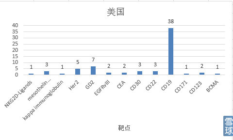 对比一下中美CAR-T情况: 1.靶点: