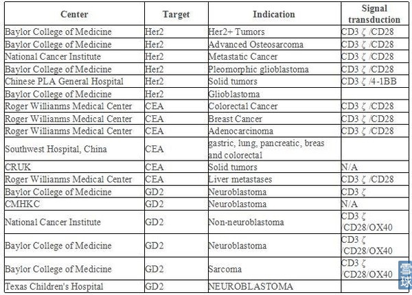 比较有意思的是美国Celdara Medical, LLC的一项研究:Safety Study of Chimeric Antigen Receptor Modified T-cells Targeting NKG2D-Ligands,这项研究的靶点是广泛表达于多种肿瘤细胞表面的NKG2D配体,目的是为了研究出一种“通用”的CAR的。 2.单位