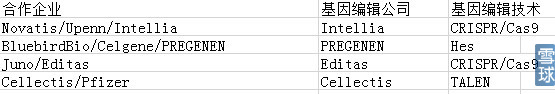 5.Cellectis,Cellectis是异体T细胞治疗平台领跑者,其通过TALEN 技术敲除了CAR-T细胞的TCR和CD52基因,在达到消除组织相容性问题。2015年11月6日,Cellectis的异体CAR-T疗法向前迈出重要一步。一例11个月大难治性白血病女婴使用该公司UCART19疗法2个月后获得完全缓解,Cellectis股价当天上涨超过20%。2015年12月7日ASH2015年会上,Cellectis详细展示了这一治疗过程。如果异体CAR-T最终可行,单例治疗价格可能下降到5-10万美金,生产效率也会大幅提升,CAR-T疗法领域也将迎来变革。 异体T细胞是CAR-T制备难题的一个很好的解决办法,而解决这一问题最好的办法就是基因编辑(关于基因编辑后续有时间再聊)。所以各大巨头都在寻求基因编辑公司的合作。