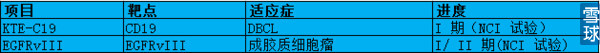 3.Kite Pharma,Kite Pharma.(KITE)与美国国家癌症研究所(NCI)、美国国立卫生研究院(NIH)建立了广泛的合作关系,公司是全球唯一拥有美国国立卫生研究院(NIH)许可的药物公司。值得注意是Kite Pharma也做TCR-T方面研究开发。目前CD19 CAR 和KTE-C19 进展最快,分别处于临床2/3 期和1 期。2015年 12月7日ASH2015上,KITE公布了其CAR-T疗法KTE-C19-101(ZUMA-1)针对难治性恶性NHL的I期临床数据。7例DLBCL患者中4例完全缓解,1例部分缓解,总应答率为71%(5/7)。同时,KITE公司KTE-C19治疗NHL在II期临床试验阶段被FDA授予突破性治疗药物资格。如果进展顺利,该产品有望成为治疗DL-BCL 的三种疗法之一。 研发管线: