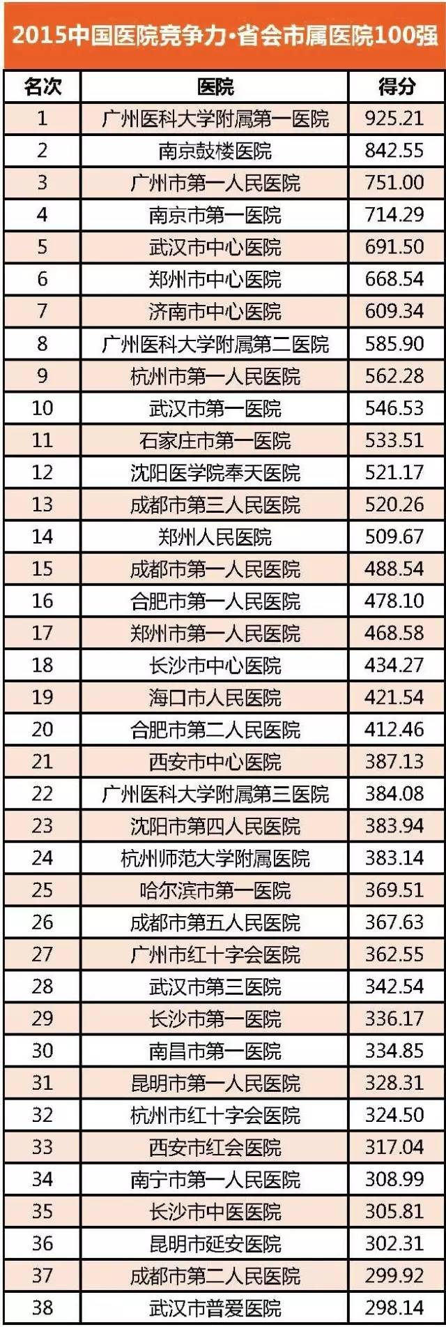2016年3月26日由香港艾力彼医院管理研究中心与中国社会科学院社科文献出版社共同举办的《医院蓝皮书》中国医院竞争力报告(2016)发布会在广州举行。当天在中国大酒店举行的“2016中国医院竞争力论坛”上,香港艾力彼隆重发布了“2015中国医院竞争力•省会市属医院100强”排行榜。![]() 省会市属医院生存的压力并不大,运营的规模不大,总体竞争力水平百强不如省部级医院,甚至部分医院不如地级城市医院百强,因为地级城市医院百强基本是当地的领头羊。 省会市属医院数量在所有层级医院中最少,根据香港艾力彼医院管理研究中心的统计,全国大概有250家省会市属医院。 如果说地级城市医院的夹心地位是虚拟的话,那么省会市属医院的地位则是现实的。毫无疑问,省会是本省份医疗资源最丰富的城市,包括各个层级的医院,上有省部级医院,中有省会市属医院,下有区级医院和社区卫生服务中心。因此,在如此高密度的城市中,省会市属医院的发展压力从理论上讲是最大的。但是,因为省会的常住人口通常较多,省部级医院总体服务能力有限,众多无法到省部级医院诊疗的患者转而选择省会市属医院。省会市属医院则得益于省部级医院服务规模有限导至患者溢出。 《医院南皮书》指出,过往3年,省会市属医院综合实力最强的是广州、杭州、武汉、沈阳、南京、成都、西安、郑州,都是人口多且经济发达的省会城市。 ![]() ![]() |
