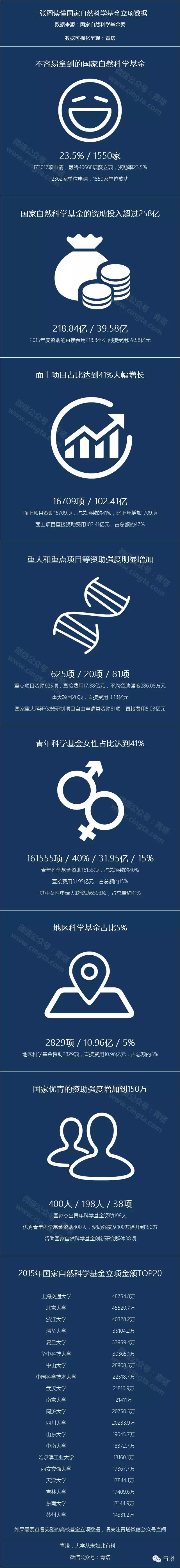 日前,国家自然科学基金委在北京开了七届四次全委会,在本次的会上公布了一系列的2015年国家自然科学基金数据,从中我们可以看到很多有意思的内容。 从这次公布的数据看,虽然说国家自然科学基金的资助率近年来在不断提高,但是想要拿到国家自然科学基金依旧是非常不容易的,国家自然科学基金的整体资助率是23.5%,不过这里面一批顶尖大学和顶尖的科研院所占据了大头,对于很多的普通高校来说,拿到国家自然科学基金依旧非常不容易。 另外值得关注的是,国家自然科学基金委近年来和各省的联合基金开始增多,其与浙江、山西、辽宁、贵州、广东、新疆、福建、河南等新签或续签协议,与广东省联合资助大数据科学研究中心,续签大科学装置、民航、通用技术等联合基金协议等,全年资助联合基金项目716项,直接费用8.60亿元。