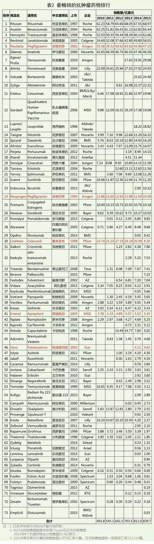抗癌药物盘点 最畅销的抗肿瘤药物排行