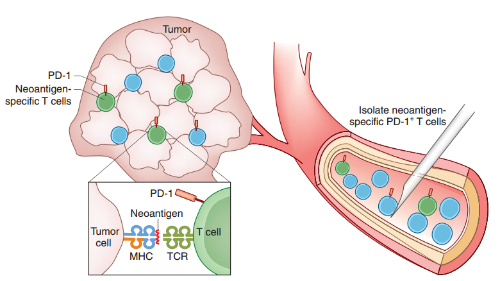 ![]() 如今人们知道T细胞能够识别并杀死肿瘤细胞,利用抗肿瘤活性为目的的治疗方法被称为癌症免疫疗法。可通过使用克隆特异性T细胞受体(TCR)来扫描出现在组织相容性复合体(MHC)上的小肽片段,从而实现T细胞检测异常肿瘤细胞。 许多人类肿瘤存在大量的DNA突变,过去研究证明了突变基因编码的 “肿瘤抗原”是当前癌症免疫疗法发展的一个主要推动力。由于新抗原的表达完全受限于肿瘤,发展增强肿瘤抗原特异性T细胞反应的疗法最为受欢迎。然而,由于肿瘤患者(如黑色素瘤患者和肺癌患者)中的绝大多数突变在预见频率上不具共享性,这导至事实变得更加复杂,因此肿瘤对免疫系统出现排异大部分归因为私有抗原。如何开发新抗原特异自体T细胞产品?科学家需要新鲜的肿瘤材料,然而这种壮举难以在多种肿瘤中实现。 Nature子刊:免疫疗法中的液态活检 ![]() 图注:在新研究中,研究人员表明在个体癌症患者的血液中发现同样的T细胞PD-1表达。通过这种方法,循环CD8+T细胞表达的PD-1不仅为肿瘤中T细胞抗肿瘤活性打开了窗口,还可作为肿瘤免疫疗法中分离肿瘤反应CD8+T细胞的标志物。绿色细胞代表表达PD-1(对肿瘤细胞突变抗原做应答)的肿瘤抗原特异性CD8+T细胞,蓝细胞代表表达特异性抗原而非肿瘤抗原的CD8+T细胞。 近日,发表于《Nature Medicine》上的研究展现了一种获取肿瘤抗原特异性T细胞的捷径,研究人员表示可以从黑色素瘤患者的循环血液中将其准确分离。这样一来,他们为具有广阔应用潜力的癌症自体免疫细胞治疗新思路打下了基础。 在本次研究中,研究人员用以确定外周血肿瘤反应T细胞群的方法聚焦于毒性CD8+ T细胞群。早前该研究团队曾表明黑色素瘤患者中对肿瘤侵润性T细胞反应的肿瘤富含表达PD-1的T细胞。为了测试外周血T细胞是否也有这样的效应,研究人员使用流式细胞仪分离癌症患者血液中表达或不表达PD-1的CD8+T细胞群,同时研究人员通过深度测序以确定相应患者的肿瘤特异性基因突变,将突变的基因片段在自体树突状细胞中进行人为表达。 通过对抗原呈递细胞和从患者血液中分离出来的不同CD8+T细胞群进行共培养,研究人员发现血液中T细胞PD-1的表达(PD-1–expressing T cells),而不是(或很少)缺乏PD-1的T细胞对个体肿瘤中的抗原具有反应性。有趣的是,作者还表明血细胞室中表达PD-1的T细胞的肿瘤抗原特异性与肿瘤本身PD-1表达T细胞非常相似。 本次研究共有四个黑色素瘤患者参与,研究人员从三个患者的血液中分离出突变特异的T细胞,该结果如何应用至黑色素瘤的一般人群还有待观察,因此更不用说用于其他类型的癌症。然而,通过展示PD-1+T细胞子集中的肿瘤反应,该研究引发了很多值得深思的问题。 首先,如何将这些观察转化到T淋巴细胞子集中:CD4+帮助T细胞?这种T细胞亚型有助于启动或保持T细胞应答的持久性,包括针对肿瘤的T细胞。此外,与CD8+对应,CD4+辅助T细胞可识别伴随DNA突变而出现的肿瘤抗原,也曾有病例报告表明了这些细胞的潜在临床效用性。因此,了解能否使用PD-1或其他的标记物来识别血液腔中的肿瘤特异CD4+ T细胞显得非常重要。 其次,作者观察到了血液腔中肿瘤特异性CD8+T细胞在其他标记物或抗体缺乏时表达PD-1,那么问题来了,在这种情况下是什么使PD-1特殊?可以想象,循环T细胞PD-1的表达揭示了这些细胞曾经遇到的一些激活信号,这也是将来的研究热点。 |