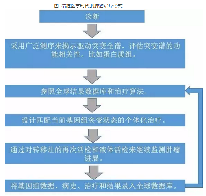 ![]() 医学研究已经迎来了精准医学的新时代,刚刚还在实验室中应用的工具,转眼之间已经被应用于临床研究。随着第二代测序技术及生物学进展,肿瘤治疗领域也正在经历迅猛的发展。 肿瘤学中的精准医学方法 主要的技术进步通常会带来超越技术初始目标的创新和改变。第二代测序(NGS)技术、各种组学的应用、不断增长的计算能力和日益累积的“大数据”,将促进精准医学在肿瘤学中的发展。 ![]() 现有技术,尤其是第二代测序(NGS),已经能实现对肿瘤基因组进行系统性评估。而基于其性能特征和成本,NGS已经可以融入到常规临床护理和药物研发中。尽管现在预测NGS将在多大程度上改变肿瘤学还为时尚早,但是NGS可能成为常规诊断的重要工具,当NGS与基于突变谱的临床相关的治疗算法相结合时,将对患者结果产生有益的影响。与免疫治疗进展一道,NGS作为癌症患者选择性靶向治疗的基础,应当融入到未来肿瘤药物发展的战略规划中。 在未来,整合系统生物学方法除包含基因组学外,还包括表观基因组学、通路分析,以及从肿瘤微环境中得到的信息。预期这种整合系统生物学将会改善临床决策的制定。利用NGS来阐明躯体基因组变异对治疗结果的影响是重要的第一步,即使目前将患者与靶向治疗相匹配的尝试对罕见突变只表现出较低的可实施性(13%)。 当进行NGS或分子谱驱动的试验时,需要将临床试验变为以患者为中心(而不是以药物为中心),这样的治疗将变得更加个体化。 目前已经开展了为个体患者的疾病订制特异性治疗方法的临床试验。许多主要癌症中心为患者提供综合性分子诊断谱来扩大癌症基因检测的应用。单一生物标志物检测的连续应用具有局限性,这正刺激了广泛的分子检测的发展。此外,对循环肿瘤DNA(ctDNA)的纵向测序可以提供有关耐药和最佳联合治疗或治疗次序的有价值的信息。肿瘤进展可以被看作是动态进化过程,这表明需要评估新驱动突变的亚克隆表现。展望未来,NGS、RNA测序的新的应用将会实现对肿瘤样本的基因表达分析。这将与蛋白质组学等方法一起,进一步阐释基因组变异的功能性作用。 还需要更多的数据来更好的理解肿瘤的时间和空间异质性,以及这些因素对测定试验和个体化治疗成败的重要性。 NGS驱动试验应该考虑以下原则 ●除肿瘤基因组外,将通路和网络的知识整合在一起,比如转录因子、表观基因和蛋白质组。 ●发展数据分析和治疗设计的算法。定义标准、数据质量以及建立算法的数据来源。 ●药物联合治疗将对临床收益最大化和减少耐药至关重要。 ●尽早治疗以使患者结果最优化,肿瘤异质性和基因组不稳定性会随时间延长而增加,特别是在肿瘤细胞内部的破坏性进展事件之后。 ●纵向随访患者:对复发肿瘤或转移灶的再次活检,以及基于血液的测序(DNA和RNA)对实现个体化、适应性治疗十分关键。 |