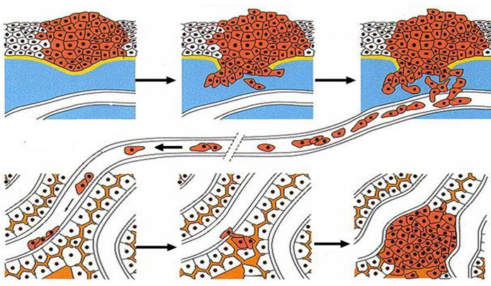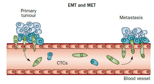 CTCs转移过程中必经阶段: CTCs通过从肿瘤组织中脱落游走至血管,穿过血管进入血循环,克服自身及血循环中各种因素的杀伤作用,到最后定植形成新的转移灶等多个生理步骤,使得CTCs可顺利侵袭转移从而促进相关疾病的进展。