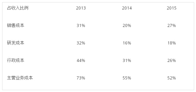 第二,在2014年之前,Sequenom的营收来自于直接为医疗机构提供无创产前检测,大部分费用由商业保险或联邦政府保险支付。但是在2014年12月,Sequenom与Illumina一起达成了专利池协议,这项专利池包括超过400种与无创产前检测相关的专利使用权,这标志着两家公司之前在无创产前检测技术的专利官司上达成和解,由此整个专利池由Sequenom和Illumina共同拥有。从2015年开始,Sequenom和Illumina一起将这项专利池授权给客户使用,收取专利费用。这也是Sequenom的总收入2015年相比2014年下降了15%的原因,一部分用户转化为支付专利费用,获得专利授权后自己进行无创产前检测,因而导至Sequenom的直接检测收入下降了19%。送检的样本数量也从2014年的19.7万例下降到2015年的18万例。 这一转变揭示了在无创产前检测领域在发展道路上可能存在的问题。由于无创产前基因检测是基因检测领域商业化最成熟的板块,成本也随着技术更新及使用普及不断下降,相比其他领域的基因检测,如肿瘤免疫和遗传学等,无创产前检测的技术门槛相对要低。尤其在国外成熟市场,已经形成了从产妇风险评估、送检、获得报告、保险支付这样一套流程,不少大医院的实验室在病人需求明确的情况下,也有能力自己进行这项检测。而且,样本在送检上也有地域所导至的额外开销和时间效率问题,因此,Sequenom除了与Illumina在技术上合作形成相比同类服务商的竞争优势之外,技术授权在扩张上的速度可能会很快,不过这同时也将影响到直接检测服务的收入。 第三,在无创产前筛查上的一个行业趋势是,检测提供商已经感觉到在高危筛查领域的增长潜力的瓶颈。虽然高危筛查所获得的保险覆盖发展的最成熟也最广泛,但随着保险的进入,价格被不断压低。美国每年有大约400万新生儿,高危大概有75万例,高危筛查的需求比例基本在18%左右,这一比例基本恒定,无法大幅度提高。因此,这一市场的增长潜力是有限的,收入也会随着保险对检测服务的压价而降低。所以,包括Sequenom在内的中游无创产前检测服务商纷纷将目光瞄准了针对中危产妇的筛查项目,认为这是未来的一大新的增长点。不过,这一市场发展的最大困境是保险现阶段不报销中危人群的筛查费用,而筛查在美国的资费价格为1700美金到2000美金左右,自费是很难接受的。 最后,成本控制也是中游检测提供商的极大挑战。Sequenom近三年来一直在进行成本控制,其销售成本占营收的比例从2013年的31%下降到2015年的27%,研发成本占营收比例从2013年的32%下降到18%,主营业务成本COGS占总营收比例也从73%下降到52%。Sequenom借此希望大幅缩小其亏损。 图表2:Sequenom主要支出占营收比例