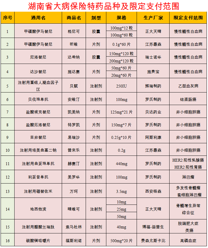 ![]() 近日,湖南省人民政府官方网站发布了《湖南省人力资源和社会保障厅湖南省卫生和计划生育委员会关于印发《湖南省大病保险特殊药品支付管理办法(试行)》的通知》,公布了《湖南省大病保险特殊药品支付管理办法(试行)》(下称《管理办法》)全文,进一步落实特殊药品纳入大病保险支付,加强和规范特殊药品使用管理,保障重特大疾病患者特殊用药待遇。 ![]() 《管理办法》涵盖特殊药品范围、保障对象、待遇标准、服务管理、结算方式、监督管理及其他事项七大内容。《管理办法》指出,大病保险特殊药品(以下简称“特药”)特指不在现行《湖南省基本医疗保险、工伤保险和生育保险药品目录》和《湖南省新型农村合作医疗基本药品目录》之内,但对治疗重大(罕见)疾病临床必须、疗效确切、价格昂贵,且已通过谈判机制纳入湖南省大病保险支付范围的药品。记者了解到,此次纳入医保特药支付范围的10种药物均以癌症靶向治疗为主,生产厂家、品种、规格及限定支付范围如下表所示: ![]() 表格来源:湖南省人民政府官网 “特药待遇” 根据《管理办法》,特药的大病保险待遇(简称特药待遇),包括大病保险支付待遇和按规定获得的无偿供药待遇。 病保险支付待遇 特药费用支付不另行设立起付线,一个医保结算年度内,参保患者发生符合规定的特药费用,城镇职工按照特药的医保结算价纳入大病医疗互助费支付,城乡居民纳入大病保险基金支付,6万元以内(含6万元)城镇职工按70%、城乡居民按60%支付,6万元以上12万元以内(含12万元)城镇职工按60%、城乡居民按50%支付,超过12万元的特药费用,不纳入支付范围;特药实际报销金额计入年度职工大病医疗互助最高支付限额或城乡居民大病保险最高支付限额。特药大病保险待遇标准将根据国家相关政策、基金运行情况、筹资水平等因素适时调整。 无偿供药待遇 按照与特药生产厂家的谈判约定,参保患者因治疗所需按规定申请获得药品生产企业或慈善合作机构无偿提供的特药,大病保险不再支付特药费用。 《管理办法》全文链接:《湖南大病保险特殊药品支付管理办法(试行)》 备注:本文根据湖南省人民政府官网整理报道 |