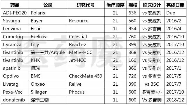 美国临床肿瘤学会(ASCO)年会是肿瘤领域一年一度的盛会,ASCO2016即将于6月3日-7日在美国芝加哥召开。全球医药市场调研机构EvaluatePharma近日发布了题为“EPVantage ASCO2016 backgrounder”的报告,主要是将EP过去6个月整理过的肿瘤药III期临床研究进行了汇总,今天为大家分享一下。 晚期肝细胞癌