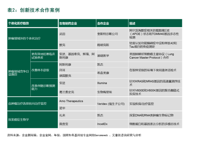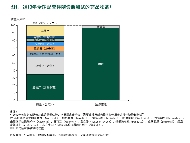 本文来自L.E.K.(艾意凯)咨询,作者:Brian Baranick、Alex Vadas、王景烨 过去十年,各个医药领域都转向个体化治疗,个体化治疗主要通过生物标记物和配套的伴随诊断(CDx)来划分病人群体。生物制药企业与成熟的体外诊断(IVD)公司合作开发伴随诊断测试,这一模式已被证明普遍有效。然而,个体化治疗的诸多驱动因素给伴随诊断行业带来了快速变革,促使生物制药企业全面评估新的伴随诊断技术,并缜密规划新技术的合作。 伴随诊断领域现有合作:基于有效成果 目前,个体化治疗大多被应用于肿瘤领域(见图1)。在伴随诊断基础上进行的肿瘤治疗基本都采用"一药一测"的模式,以此选择合适的治疗药物。
