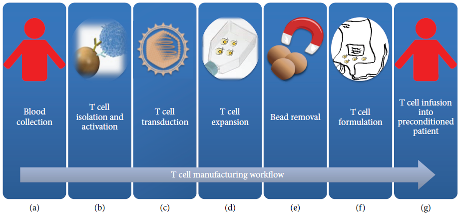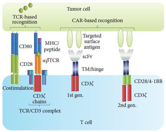 ![]() 本文转载自《源正细胞》;编译:ShaozuYang Resources: CAR-T celltherapy: a game changer in cancer treatment;Journal of Immunology research,2016,1-11 CAR-T cell therapy,A game changer in cancertreatment 前 言 传统的肿瘤治疗方式:化疗、放疗及其近年如火如荼发展的单克隆抗体、小分子抑制剂等在肿瘤患者治疗中的巨大差异及较高的复发率,正面临着严峻的挑战。 二十年前,Gross及其同事首次证明基因修饰的T细胞在对抗肿瘤细胞中的效果,从而奠定了CAR-T细胞治疗的基础。 第一代CAR-T以融合scFV和CD3ζ 来修饰T细胞,尽管在体外动物模型研究中取得了鼓舞人心的效果,但靶向FR的CAR-T治疗卵巢癌患者效果欠佳,14例患者均没有观察到肿瘤负荷的下降,在共刺激信号缺乏的时候,第一代CAR-T容易导至T细胞无能和激活诱导的细胞死亡(AICD); 此后一系列研究开始开发整合共刺激信号的第二代CAR-T技术,显示出巨大的治疗潜力,尤其是针对B细胞表面的CD19分子的CAR-T治疗,对于难治性B细胞淋巴瘤的效果尤为明显。 在近几年,针对新型分子和免疫学研究的进展为T细胞治疗提供了良好的基础,通过良好的CAR-T的设计、T细胞生产的优化及针对患者采用良好的预处理方法,这些进展都在为新的肿瘤联合治疗开辟新的路径。 ![]() 图1:TCR与CAR元件的识别与激活 TCR由二硫键链接的αβ亚基的异二聚体与恒定的CD3链组成的复合体,TCR识别通过MHC分子呈递的细胞内和细胞外蛋白。 CD28分子通过其配体CD80/CD86,在IL-2和其他细胞因子的参与下激活,传递第二信号.绝大多数血液性肿瘤表达共刺激分子,但在肿瘤微环境中,实体瘤通常缺乏此类分子。 CARs属于一类单克隆抗体上的scFv段与一个或多个T细胞受体内单个信号域(TM)结合的融合蛋白,CARs通过MHC非限制性的方式识别表面抗原,第一代CARs 信号主要通过CD3 ζ传导,第二代CARs包含有共刺激分子如:CD28,4-1BB,OX4,CD27,ICOS。 T细胞治疗现状 T细胞过继治疗首次用于人体肿瘤的是应用捐献者的淋巴细胞(DLI)回输,用于一名骨髓移植后复发的髓性血液肿瘤患者,进一步的研究证明扩增的肿瘤浸润细胞(TIL)能够使大的血管转移性的黑色素瘤得到完全的、持续的缓解,对血液中循环肿瘤细胞(CTC)的监测也表明ACT治疗取得临床效果。然而此类治疗主要依赖于内源性的T细胞组份。 近来的技术发展表现在:采用逆转录病毒或质粒载体来修饰的基因工程T细胞技术,通过大量的靶向T细胞(CART或TCRT)的产生来攻击肿瘤细胞,主要比较如下图。 截止到2015年底,全球共有近8000名患者入组clinicaltrials注册的200多个临床试验,约85%的临床试验在美国和中国开展,大约65%的研究为靶向血液型肿瘤,CD19仍然是通用的血液型B细胞肿瘤的靶点抗原。目前在研的其他靶点抗原主要包括:CD20、CD22、CD30、ROR1、k轻链、CD123、CD33、CD133、CD138等。 ![]() 图2:如图显示为截止2015年12月在http://clinicaltrial.gov/上的ACT治疗试验(关键词为:T细胞、肿瘤),200多例临床试验注册,约40%为CAR-T细胞试验,65%的研究集中在血液肿瘤。从PBMS中分离未经修饰/微小处理的T细胞治疗:TILs,15%;DLI,10%;病毒或抗原特异性T细胞,10%。 影响CAR-T细胞治疗的疗效的因素 临床数据表明在T细胞的扩增与持续存在,是CAR-T治疗中获得肿瘤有效清除的关键因素,除此之外:CAR-T的设计、回输中T细胞组成比例、肿瘤类型、肿瘤微环境和患者的预处理情况都影响着后续的治疗效果。 Savoldo及其同事采用第一代和第二代CAR-T细胞的混合组份治疗6名淋巴瘤患者证明了引入共刺激分子信号的重要性,临床试验表明包含CD28分子的CAR-T经历快速的扩增,但随之下降,而4-1BB分子信号能够使CAR-T持续存在。 在淋巴瘤的鼠动物模型中研究发现,CAR-T细胞中初始T细胞的组份不同,呈现出来的治疗效果不同,病毒转导的记忆性T细胞呈现更好的扩增潜力, 对于实体瘤的治疗,挑战依然巨大,它们所处的微环境不利于T细胞的生长,从而导至T细胞在此环境中无能。 ![]() 图3:图示为CAR-T细胞治疗涉及到的制造与运送环节。(a)首先从捐献者或者患者收集外周血(PBMCs),(b)运送到GMP实验室,在偶联CD3和CD28抗体磁珠的介入下分离并激活;(c)表达CAR的病毒转导修饰T细胞,(d) 激活的T细胞在体外经过10-14天培养扩增达到治疗级别的细胞数,(e)移除磁珠,(f)包装或冷藏用于回输,在CAR-T细胞回输之前对患者进行有条件的化疗预处理。 影响CAR-T治疗的安全性因素 鉴于CAR-T治疗的巨大潜力,此种治疗的应用同样也会有很大的毒副作用。 主要体现在:威胁生命的细胞因子释放综合征(CRS)和巨噬细胞激活综合征(MAS)、靶向/脱靶毒性、神经系统毒性、肿瘤溶解综合征。 CRS和神经系统毒性在B细胞血液病治疗中常见,大多数病例可以治疗和逆转。应用单克隆抗体tocilizumab可以阻断IL-6的激活、减轻炎症反应,从而缓解CRS和MAS。 靶向/脱靶毒性首次在应用 CAIX的CAR-T治疗肾细胞癌的患者中首次报道,数例患者经历的严重的肝毒性反应最后停止治疗。第1例致死的副反应发生在应用靶向ERBB2/HER2的CAR-T细胞治疗结肠癌患者,此例患者发生了严重的呼吸窘迫综合症,在治疗5天后,死于多器官功能衰竭。 前 景 1.过继性基因修饰T细胞治疗肿瘤是一个革命性的方法,前景无限,目前有效性在如下血液肿瘤中治疗中得到证明:ALL,CLL,DLBCL,FL及多种黑色素瘤。 2.针对实体性肿瘤的治疗,I期临床数据呈现良好的数据:主要包括过表达mesothelin,HER2,EGFR等神经母细胞瘤。 3.挑战依然