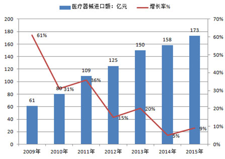 医疗器械进口产品主要以高端诊疗器械为主 在世界医疗器械行业中,中小企业占有绝对数量,尤其小微医疗器械科技公司更是医疗器械新产品研发的主力,成为大公司重点收购对象。而相对成熟的企业和某一领域领军的企业则更能成为跨国公司并购的对象,以此消灭竞争对手,并通过自有品牌营销战略扩大在某一国家的市场销售份额,在不断增强自有品牌营销影响之时,终结原有品牌的影响而实现该领域的独有战略。 医学影像设备的数字化和信息化借助互联网技术为远程医疗诊断和治疗提供了可靠的帮助,提高了边远落后地区的医疗诊治水平,同时也可借助手术机器人(300024)实施远程操作,或通过现代通讯方式指导前方术者操作,实现即时手术方案以提高当地无法解决或因空间距离无法亲临现场而实现的高水准医疗技术。相比之下,通过互联网的广泛应用对术后患者的随访以及术前疾病诊断提供更加现实的可能,也为世界范围内的服务外包提供了基础。 当前,现代医学加快向早期发现、精确定量诊断、微无创治疗、个体化诊疗、智能化服务等方向发展,对医疗器械领域的创新发展不断提出新的需求。在以疾病为中心向以健康为中心的医学模式转变过程中,面向基层、家庭和个人的健康状态辨识和调控、疾病预警、健康管理、康复保健等方向正在成为新的研究热点,进一步对医疗器械领域的创新发展提出了新的需求。 预计未来五年至十年,中国医疗器械产业与世界医疗器械市场的关联度将越加紧密,对中国的医疗器械制造工艺、新材料应用、研发水平、营销网络势必产生巨大影响,促使中国医疗器械产品从中低端向高附加值的高端产品转化。重点产品如影像、免疫、疫苗、生化、血透、监护、高端耗材与植入及家庭康复用品等,研发与投入将突破瓶颈制约。 医疗器械行业在我国是一个朝阳产业,企业如能从未来的医学发展方向、国际市场环境、国内市场政策及自身发展战略三者联动过程中抢占先机,必将成为行业的佼佼者。