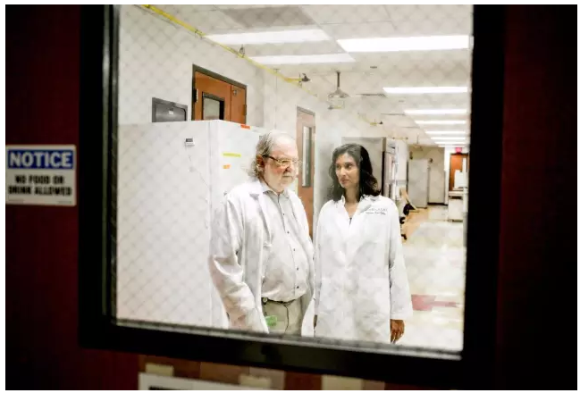 James Allison先生和Padmanee Sharma女士在实验室 今年67岁的James Allison和45岁的Padmanee Sharma从2005年开始就是科研上的合作伙伴。2014年时,两人结婚。James Allison在求婚时说道,除了两人彼此之间,没有其他人能容忍我们俩——两人几乎成天都在和对方交流工作。既然如此,为何不能生活在一起呢? James Allison博士,一个留着胡子面带皱纹的“老男孩”,和他的同事们组成了一支名叫“检验点”(Checkpoints)的乐队,自己在其中吹走口琴。他的技艺已使其足以与著名歌手威利•纳尔逊(Willie Nelson)同台,就在今年春天的德州“红脖子乡村俱乐部”的舞台上,两人共同演唱了《等我死了,把我卷成香烟抽了吧》(Roll Me Up and Smoke Me When I Die)这首歌曲。