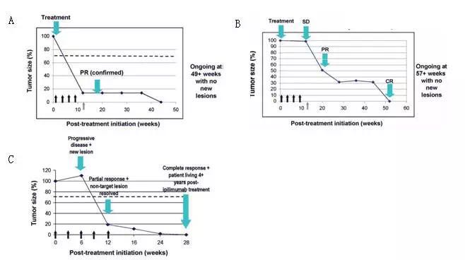 ![]() PD-1/PD-L1抗体不同于化疗和靶向治疗的治疗反应 化疗和靶向治疗直接作用于肿瘤细胞,治疗后出现3种肿瘤体积或径线变化形式:①肿瘤体积或单径不断缩小(有效);②肿瘤长大(疾病进展);③肿瘤体积或径线无变化(稳定)。为此,业界设计了实体瘤评价标准(Response Evaluation Criteria in Solid Tumor ,RECIST)来评价化疗和靶向药物的有效性。而PD-1/PD-L1抗体的作用原理是激活肿瘤特异性淋巴细胞来杀灭肿瘤细胞。开始PD-1/PD-L1抗体治疗后,免疫系统需要一段时间来“招兵买马”,召集淋巴细胞进入肿瘤组织并与肿瘤细胞“群殴”。由此可能产生2个不同于化疗和靶向治疗的治疗反应形式:假性进展和延迟反应。 假性进展 如果以肿瘤体积或径线变化来评价PD-1/PD-L1抗体的有效性,除了出现上述3种肿瘤变化形式外,还可能出现第4种变化方式,即在PD-1抗体治疗过程中肿瘤体积或径线一过性增加或者出现新病灶,此后肿瘤才缩小。一过性肿瘤增大是因为过量淋巴细胞浸润肿瘤组织所致,出现新病灶是因为淋巴细胞来不及浸润肿瘤组织所致。上述现象统称为假性进展(图1)。 ![]() 图1 假性进展(引自 Ribas A, et al. CCR,2009 ) 延迟反应 如果分析治疗反应与治疗时间的关系,与化疗和靶向药物相比,PD-1/PD-L1抗体治疗后部分患者的肿瘤变化相对较慢,称为延迟反应。临床上将治疗12周后出现的治疗反应划归为延迟反应。延迟反应可能表现为3种形式。 第一种延迟反应:PD-1/PD-L1抗体治疗的过程中肿瘤缩小(PR),停止治疗后肿瘤会进一步缩小,甚至消失(CR)(图2A)。 第二种延迟反应:PD-1/PD-L1抗体治疗初期肿瘤无明显变化,RECIST评定为疾病稳定(SD),继续治疗或停止治疗后肿瘤才缩小,甚至消失(图2B)。例如,在PD-1抗体pembrolizumab 治疗晚期皮肤黑色素瘤的研究中,治疗12周时有3%的患者达到CR,治疗3年时有15%患者达到CR[2016年ASCO年会摘要号(以下简称“摘要号”)9503]。 第三种延迟反应:PD-1/PD-L1抗体治疗初期肿瘤明显增大或出现新病灶,RECIST评定为疾病进展(PD),若继续抗体治疗,肿瘤可能缩小(图2c)。 ![]() 图2 延迟反应(引自Wolchok JD, et al. CCR,2009) 免疫相关反应评价标准(irRC)的诞生 RECIST和世界卫生组织(WHO)评价标准可以覆盖第一种和第二种延迟反应,不至于误判PD-1/PD-L1抗体无效而放弃PD-1/PD-L1抗体治疗。若出现第三种延迟反应,RECIST将判定为治疗失败,导至终止PD-1/PD-L1抗体治疗,从而低估药物的有效性。为避免误判第三种延迟反应,2009年推出免疫相关反应评价标准(Immune-related response criteria,irRC)(表1)。 表1 irRC 与传统WHO 评价标准的比较 ![]() irRC的特色 irRC的创新之处在于将可测量的新发病灶计入总肿瘤负荷中,并且将其与基线肿瘤负荷进行比较。在此新规定下,即使有新病变出现,只要总肿瘤负荷并没有增加25%以上,也可不认定为疾病进展。如果肿瘤患者在初次评价时已达免疫相关疾病进展(irPD),在病情没有急剧恶化的情况下仍需要继续治疗并进行二次评价,因为肿瘤很有可能在irPD确定后4周内开始缩小,只有连续两次评价肿瘤负荷均有增加,并且大于25%才被认定为irPD。 irRC实际上提高了对RECIST评价PD的限制,让更多患者判定为irSD。一般而言,与RECIST相比,irRC 将免疫治疗的疾病控制率(DCR,为CR+PR+SD之和)提高10%左右。但个别免疫哨卡抑制剂临床试验观察到irRC评定的DCR反而低于RECIST评定的DCR或二者评定的DCR相当。 irRC对临床医生的困扰 irRC建立时间短,自身也在不断完善中,其实用价值有待进一步临床验证。临床医生的困扰在于:在PD-1/PD-L1抗体治疗过程中应该在什么时间点进行第一次疗效评价?RECIST或irRC评定为PD时应该放弃抗体治疗吗? 面对具体患者,医生并不知道PD-1/PD-L1抗体治疗后是否存在延迟反应现象,难以确定最佳疗效评定时点。以Checkmate-017研究为例,该研究入组转移性非小细胞肺癌二线接受PD-1抗体nivolumab或多西他赛(doctaxel)化疗。治疗12周时用RECIST评价疗效,接受多西他赛化疗的肺癌患者仅有个别患者被误判无效;而在接受PD-1抗体nivolumab治疗的患者中有大约44%(12/27)患者被误判无效,若4周后(治疗后16周)再次评价,19%(5/27)患者被误判无效,提示推迟第一次评价时间有助于发现更多的PD-1/PD-L1抗体治疗受益个体(图3)。 ![]() 图3 首次疗效评价时间点与评价结果的关系(引自Brahmer J,et al. NEJM, 2015) 任何事物均有两面性,PD-1/PD-L1抗体有效率除在淋巴瘤中达到80%左右和在高度微卫星不稳定性(MSI-H)肿瘤中达到60%左右外,其治疗其他常见实体瘤的有效率波动在10%~30%之间。换句话说,对接受PD-1/PD-L1抗体单药治疗的常见实体瘤患者而言,至少70%患者是无效的。如果在治疗后4个月(16周)后才给出PD-1/PD-L1抗体治疗无效的判断,可能耽误大部分患者的后续治疗。 PD-1/PD-L1抗体疗效评价的困境在2016年美国临床肿瘤学会(ASCO)年会摘要中也有所反映。在pembrolizumab治疗皮肤黑色素瘤研究中,治疗12周是一个关键节点,若此时RECIST和irRC均判定为疾病控制,患者2年生存率为77.6%。若RECIST判定为PD,仅irRC判定为疾病控制,患者2年生存率为37.5%。若RECIST和irRC均判定为PD,患者2年生存率仅17.3%。因此在第12周时使用irRC足以帮助筛选PD-1抗体有效患者,irRC判定为疾病控制者可从继续PD-1抗体治疗中受益(摘要号9521)。在转移性肾癌患者中,如果治疗12周时RECIST评价为PD,继续使用nivolumab治疗后仍有14%患者肿瘤缩小30%以上。与停药的患者相比,继续治疗者生存时间进一步延