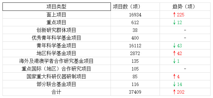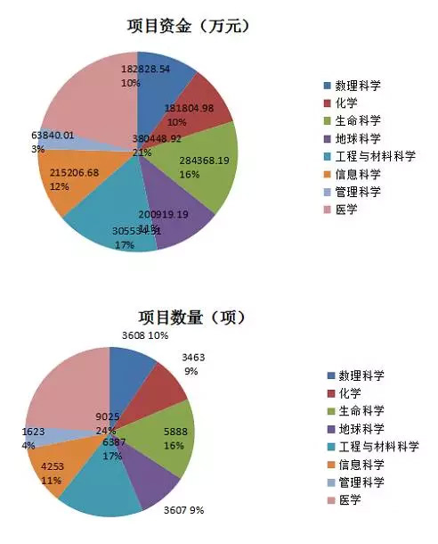 8月17日,备受瞩目的2016年度国家自然科学基金项目评审结果揭开面纱,根据国家自然科学基金委通告显示,共接收项目申请172843项,经初步审查受理169832项,决定资助其中的37409项,约占总数的22%。和2015年相比,增加202项,金额超过183亿元。 表1 2015-2016年资助项目数量变化表