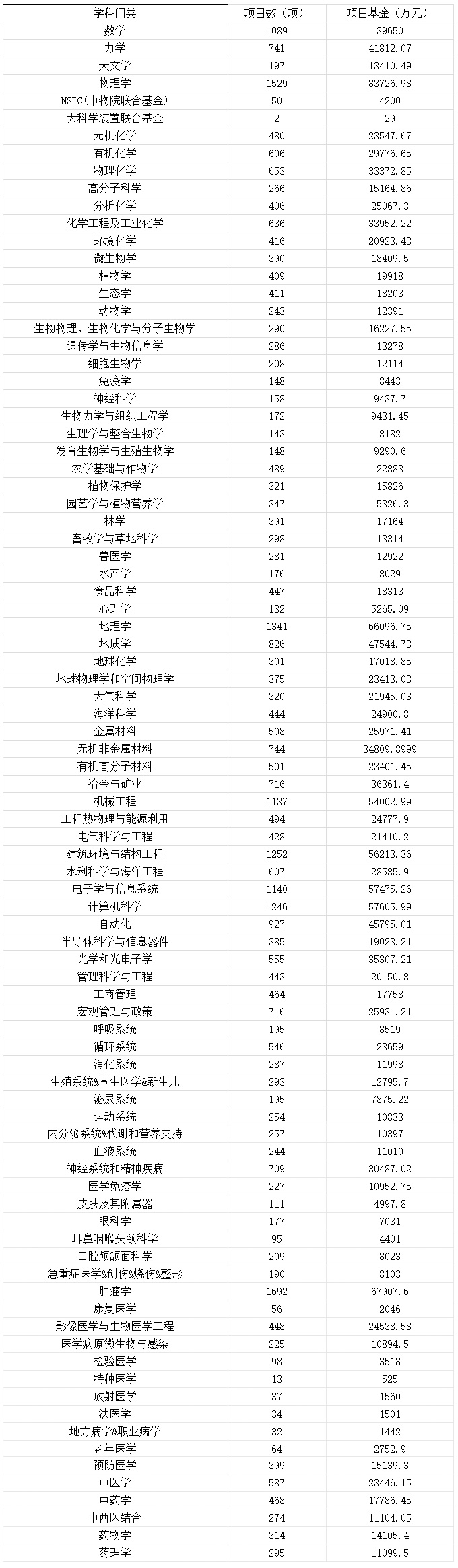 由此看来,医学科学部投入资源最多,数量和金额均超过20%。而管理科学部的项目数量和金额均垫底,占比分别为4%和3%,约为其他学部项目平均数量和平均金额的29%和21%,同时其单一项目平均赞助额亦为最低,由于自然科学基金的主要资助对象是自然科学研究,而管理科学部的社会科学属性突出,故受此冷落。 另数据显示,2016年获资助的基因编辑CRISPR技术相关项目共计80个,总金额超过3200万元。其中,获批金额最高的项目是复旦大学李华伟教授主导的“腺相关病毒介导的CRISPR/Cas9基因组定点编辑技术对遗传性耳聋的基因治疗研究”,资助金额为240万元。