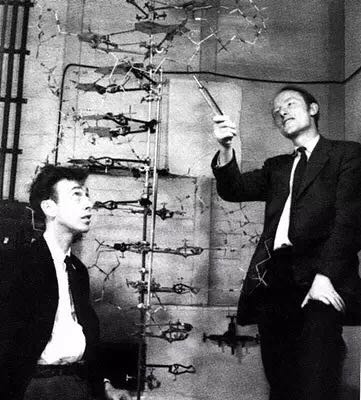 ![]() ▲本期讲者James Watson博士是诺贝尔奖获得者,他做出了20世纪最伟大的科学突破之一——发现DNA的结构 演讲实录: 我本来以为那里会有一个讲台的,现在我有点害怕了。(笑声)克里斯让我再讲一次我们是怎么破解DNA的结构的。我一向都是听从他的指令,这一次自然也不例外。但说实话,我是觉得挺无聊的。(笑声)我写了一整本书,所以我不得不说点什么——(笑声)——我打算讲一讲我和弗朗西斯是怎么发现DNA的结构的,以及我们搞这项研究的原因所在。然后我希望能至少有五分钟的时间,让我讨论一下我现在的动力所在。 我身后是一张我17岁时的照片。我那时在芝加哥大学,读大三。我之所以能在17岁时就读大三,是因为芝加哥大学在我读了两年高中之后就录取我了。摆脱高中对我来说是件好事,因为我长得很矮小,又不擅长体育,也没其他的特长。 但我得提一下我的生长背景——我的父亲从小到大都是一名圣公会教徒,是一名共和党员。结果才上了一年大学,他不仅不信神了,还变成了一名民主党员。(笑声)我母亲是爱尔兰天主教徒,但她从来没把宗教太当回儿事。所以11岁那年,我就不再去听星期天的弥撒了,反而是跟我的父亲去到处观察鸟。我很早就听说过达尔文,我那时候猜他也算是个大英雄。你们也都知道现今的生命是通过漫长的演化而来的。 而我当时在芝加哥大学又是主修动物学,所以我就想,要是我够聪明的话,搞不好最后能从康奈尔大学得到个鸟类学博士学位。恰巧当时在芝加哥的报纸上有一篇书评,是介绍伟大的物理学家薛定谔写的一本叫做《何谓生命?》的书。当然了,那也是我一直都在探求的一个问题。达尔文是解释了生命的演变,没错,但生命的精髓到底是什么呢? 薛定谔认为这精髓就是信息,是我们染色体里的信息,而且这些信息必须由一个分子来承载。我之前从来没怎么想过分子。是,我听说过染色体,但我们现在是在说一个分子,而且所有的生命信息都很有可能以数码的形式被写进这个分子中。啊,问题就来了,你要怎么复制这些信息呢? 那本书就是讨论这些问题。所以从那时起,我就立志要成为一名遗传学家——通过理解基因来理解生命。我当时也有了自己仰慕的英雄。不是什么棒球英豪,而是鲍林。所以我就申请进入加州理工学院,没想到他们竟然没要我。(笑声)没办法,我只好去印第安纳大学。其实那里的基因专业和加州工学院没什么差别。再说了,印第安纳的篮球队可是相当不错。所以我在那里的生活也算得上是快乐。而且正是在印第安纳的时候,我开始觉得我们的DNA很有可能就是我们的基因。等到我拿到我的博士学位后,我就可以去研究DNA了。 ![]() ▲年轻的詹姆应该没有想到,有朝一日他会解开生命谜团(图片来源:biography) 哥本哈根成了我的第一站,因为我觉得也许我可以成为一个生物化学家。但后来我才发现生物化学真的是相当无聊。它跟基因的本质完全没什么关联,只是一味地探讨核科学。哦,这就是我之前提到的那本书,不长,两个小时就可以读完。但我之后在意大利参加一个会议的时候,遇到了一个原本不在节目单上的演讲者,而他演讲的主题恰恰是DNA。这是莫里斯•威尔金斯,物理学家出身。二战后他决定从事生物物理学,而DNA正是他的研究对象,因为当时洛克菲勒研究所已经证实染色体上的基因分子很有可能就是DNA。但很多人却觉得应该是蛋白质。不过威尔金斯还是认为DNA才是最有可能的遗传物质,并且展示了这张X光照片。有点像个结晶体。所以DNA是有这样的一个结构,尽管说不同的分子很可能肩负着不同的职责。但至少所有DNA分子的结构都是一致的。所以我当时就很想跟他合作,但他并不需要一个鸟类观察家。没办法,我只好去英国剑桥。 我之所以会去剑桥,是因为那里才是研究射线晶体学的最好地方。现在的射线晶体学,通常是化学系的研究对象。不过在当时,那可是物理学家的天下。所以研究射线晶体学最好的地方就是剑桥的卡文迪许实验室。而我就是在那里结识了弗朗西斯•克里克。当时我并不认识他。他那时候35岁,我23岁。不过一天之内,我们就决定也许我们可以通过一条捷径来破解DNA的结构。并不是一步一步按部就班地来破解,而是直接构建一个结构模型。用X光照片里的那些长度坐标什么的来构建一个电子模型。直接来思考这个分子应该怎么叠起来? ![]() ▲经典的DNA模型(图片来源:维基百科) 为什么这么叠?这个照片中间的那位就是鲍林。大概六个月前,他已经提出了蛋白质的阿尔法螺旋结构。也正因此,是彻底击垮了站在他右边的劳伦斯•布拉格爵士。布拉格当时是卡文迪许的教授。这张照片是几年后拍的,布拉格只能是强颜欢笑。我到那里的时候,他可是完全笑不出来。因为他觉得鲍林的阿尔法螺旋发现让他丢脸了,剑桥人的失败让他丢脸了,毕竟他们并不是化学家。当然了,我和克里克也不是什么化学家。所以我们才想要直接搭建模型。弗朗西斯那时候认识威尔金斯。威尔金斯当时觉得DNA应该是个螺旋结构,他觉得那个X光图片看上去像是个螺旋。 所以我们就构建了个三股的螺旋结构。伦敦的那帮人就过来看,威尔金斯和他的合作伙伴罗莎琳•富兰克林过来看过我们的模型后,对它有点嗤之以鼻。他们觉得我们的模型相当烂。它确实是挺烂的。他们告诉我们不要再造模型了,我们没这