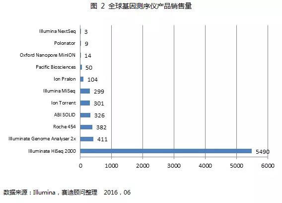 基因测序仪的技术壁垒高,基本被国外企业所垄断。基因测序仪处于整个基因测序产业链的顶端,也是价值链最高的部分。全球基因测序仪市场已经被Illumina、Life Technology和Roche(罗氏)所垄断,三家公司近乎掌控全球整个基因检测产业的上游决定权。我国在测序仪领域不断加大研发投入,试图打破测序仪市场现有的垄断局面,但是还存在技术问题有待于突破。华大基因于2013年投入1.18亿美元收购美国的Complete Genomics公司,并推出BGI-SEQ 500测序仪和Revolocity系统(处于暂停交付状态)。