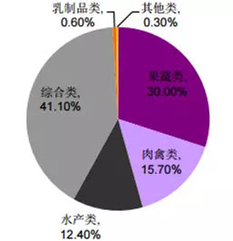 我国冷库种类主要为冻结物冷库、冷却物冷库和超低温库,其中前两者占比 较高,超低温库占比仅为0.2%。而从冷库储藏的商品品类来看,以果蔬、肉禽和水产为主的农产品占比较高,合计占比接近60%。
