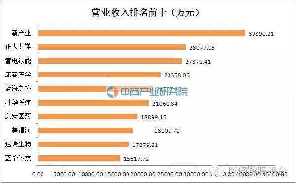据中商产业研究院大数据库显示,截至2016年8月31日,按东财行业划分,医疗器械行业共有154家新三板挂牌公司,除鑫高益外,2016上半年年报已经披露完毕。2016上半年营收达66.41亿元;净利润达6.44亿元。 营业收入排名:新产业2016上半年营业收入3.94亿元位居行业第一,正大龙祥和富电绿能分别以2.81亿元和2.74亿元分列二三位。
