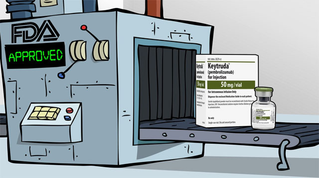今日,FDA传来重磅喜讯。由默沙东研发的免疫疗法新药KEYTRUDA获得FDA批准,用于治疗PD-L1高表达(>50%)的转移性非小细胞肺癌患者。这是目前唯一获批用于一线治疗非小细胞肺癌的抗PD-1免疫疗法,也是KEYTRUDA继上周在膀胱癌3期临床试验取得优异成绩后,短短几天内斩获的又一成就。 KEYTRUDA是一款人源化的PD-1抗体,能阻断T细胞表面PD-1受体与其配体的结合,起到激活T细胞,让其对肿瘤展开攻击的作用。今年9月,它获得了由FDA颁发的第6项突破性疗法认定,用于晚期非小细胞肺癌的治疗,并获得了优先审评资格。
