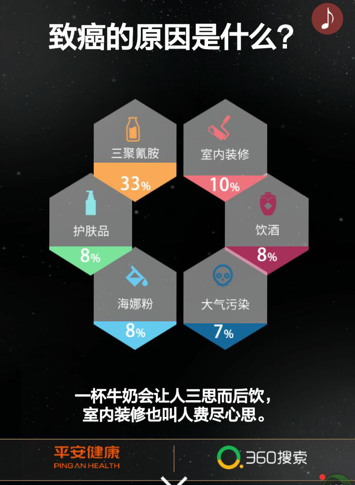 日前,360搜索联合中国平安健康险联合发布中国“癌症焦虑”大数据报告。报告不仅包含焦虑内容、年龄分布、地域分布等常规内容,还加入了星座分布、学历分布、致癌原因等年轻人衷爱的角度,方便用户从更多元的角度关注癌症人群。 以星座为例,报告显示十二星座焦虑榜前四名中土火风水四象兼备,其中,最焦虑罹患癌症的星座是处女座,虽然外表高贵冷艳,内心深处却深藏着对疾病的焦虑。排在第二位的是天蝎座,这可能与他们苦与乐都深埋内心,自己一个人苦的性格有关。傲娇的狮子座、分裂的双子座、孩子气的白羊座几乎并列第三,看来他们开朗乐观的外表只是伪装,灿烂笑容背后是一颗易碎的玻璃心。而反观淡定理性、天生乐天派的水瓶座,则对癌症表现出了“漠不关心”的态度,焦虑占比甚至比率性洒脱的射手座还要低上2个百分点。 虽然说男女有别,但是对于癌症的担忧,大家却有相通之处。报告显示男性焦虑的癌症包括肺癌、胃癌、肠癌等,女性则多了宫颈癌。看来,不论帅哥美女,大家对自己的肺和胃还是都比较关注的。这可能也和这些年空气质量不好外加“吃货横行”有关。 从致癌原因来看,食品安全和空气质量成为公认的主要原因,真的是“一杯牛奶会让人三思而后饮,室内装修也叫人费尽心思”。此外,爱美一族护肤品滥用,买醉一族饮酒过量,都可能让身体承担患癌的风险。 综合报告内容,读者可以从多方位多角度审视癌症,毕竟健康是人生最大的财富。或许看过这个报告后,我们都可以重新审视自己,关爱自己和家人的健康,从身边点点滴滴的小细节做起。