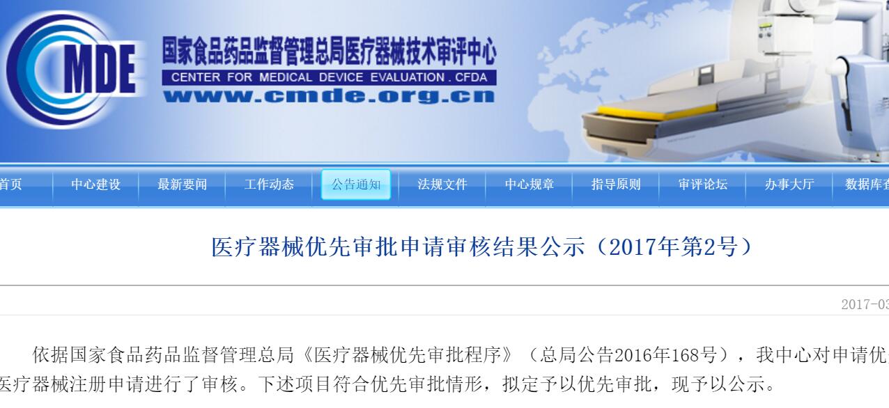 今日(3月7日),CMDE官网同时公示了医疗器械优先审批申请结果和医疗器械特别审批申请结果:其中优先审批1例产品,特别审批11例产品。 医疗器械优先审批申请审核结果公示(2017年第2号)