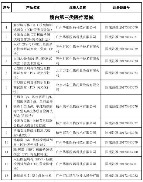 附2017年2月批准注册医疗器械产品名单