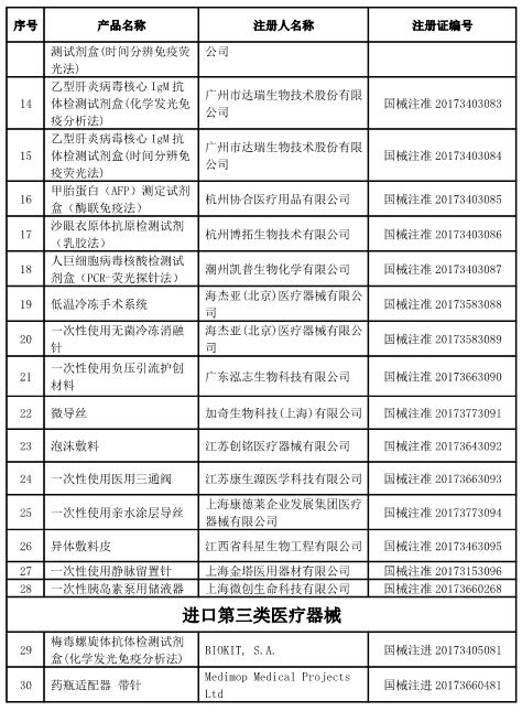 CFDA公布了2月份获批上市的医疗器械名单,2017年2月,国家食药监共批准注册医疗器械产品39个。其中,境内第三类医疗器械产品28个,进口第三类医疗器械产品2个,进口第二类医疗器械产品9个。