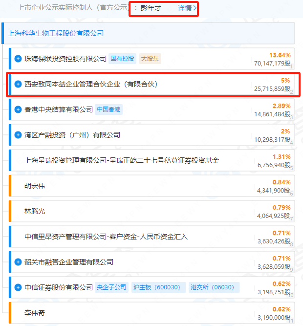本次控制权变更后,科华生物将结束无控股股东、无实控人的状态。西安致同成为科华生物的控股股东,西安致同实控人彭年才也将成为科华生物的实控人。